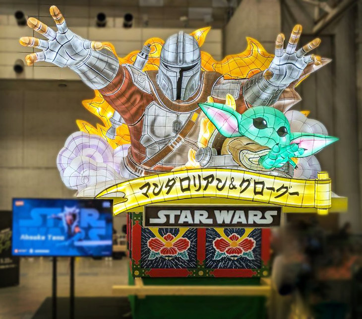 ゴジラのブースやスター・ウォーズ(マンダロリアン)のねぶたがあったり、