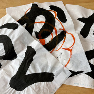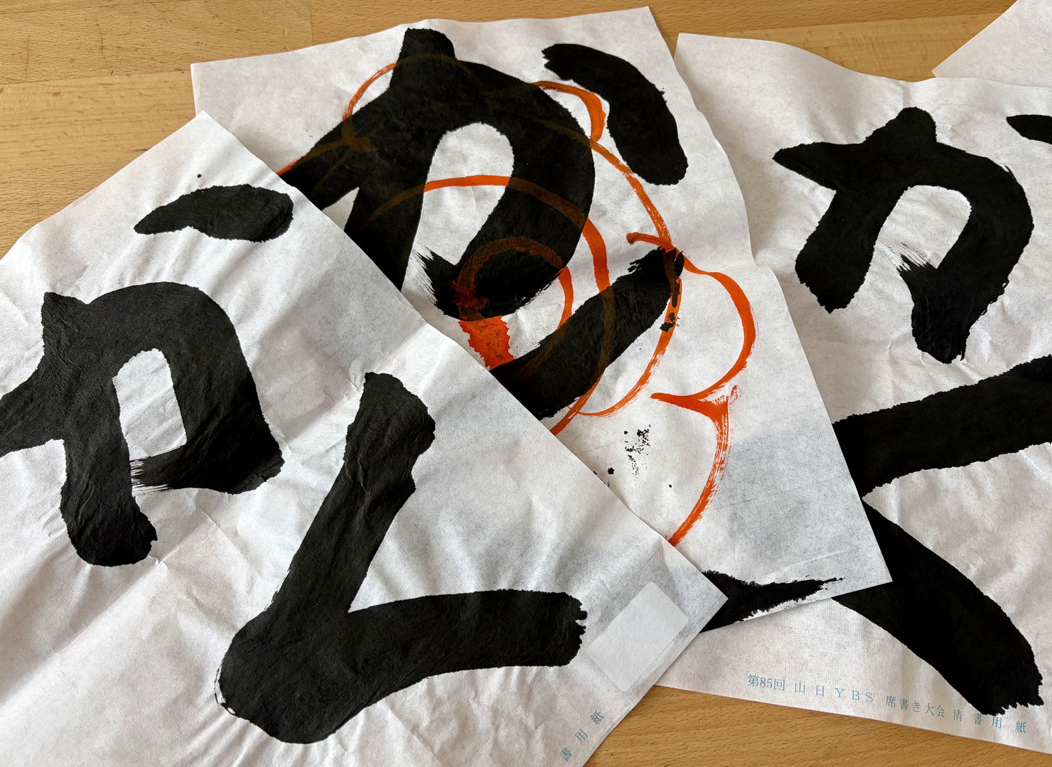 息子は保育園でこの大会に参加するため、初めて書道を体験しました。